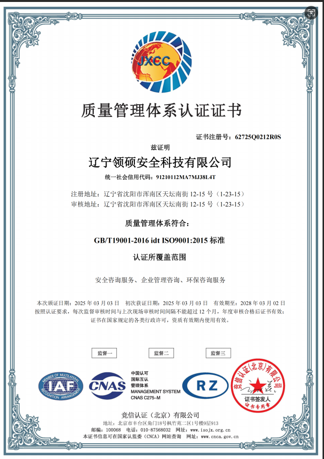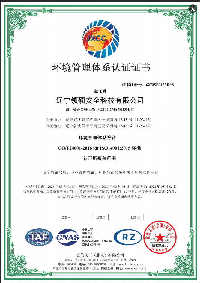遼寧領碩安全科技有限公司位于遼寧省沈陽市渾南區天壇南街12-15號,注冊資金300萬。主要經營范圍為遼寧省范圍內的安全環保咨詢,生產安全事故應急預案技術服務、企業雙重預防機制建立、履職能力評估、企業科研項目安全部分服務等的技術服務機構?,F有員工12人,其中包括5名遼寧省級安全生產專家。成立于2022年4月18日,在盤錦市成立至今已經為30余家企業提供了安全環保技術咨詢。 業務范圍包括:技術服務、技術開發、技術咨詢、技術交流、技術轉讓、技術推廣,安全咨詢服務,環保咨詢服務,標準化服務,企業管理咨詢,科技中介服務,工程管理服務,特種作業...查看更多